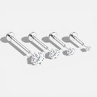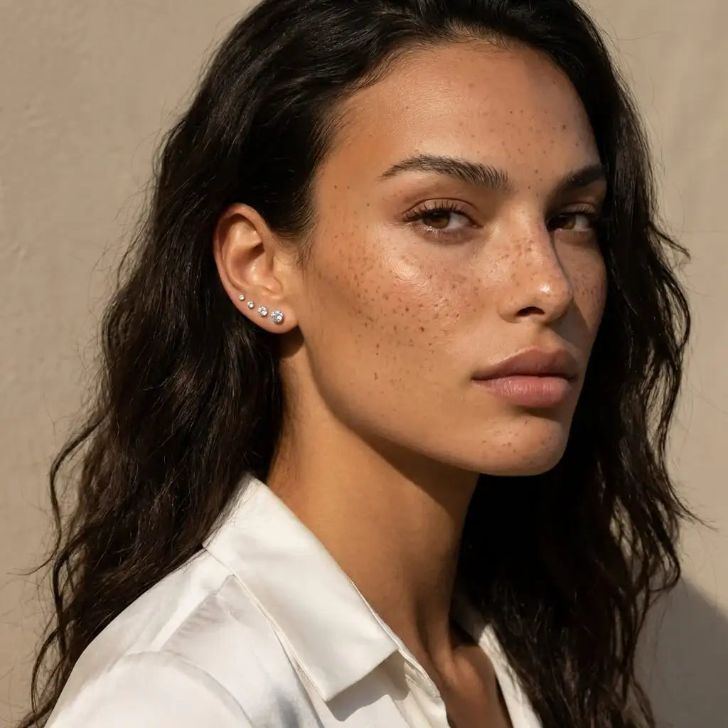 Minimal, polished, and easy to wear from day to night, the Lumine Flat Back Stud Set brings subtle sparkle to your ear stack with a clean, modern feel. Its refined silhouette makes it perfect for everyday styling, while the threadless flat back design keeps comfort at the center of the look. Delicate yet versatile, it’s a set that makes curated ear styling feel effortless from the very first wear.