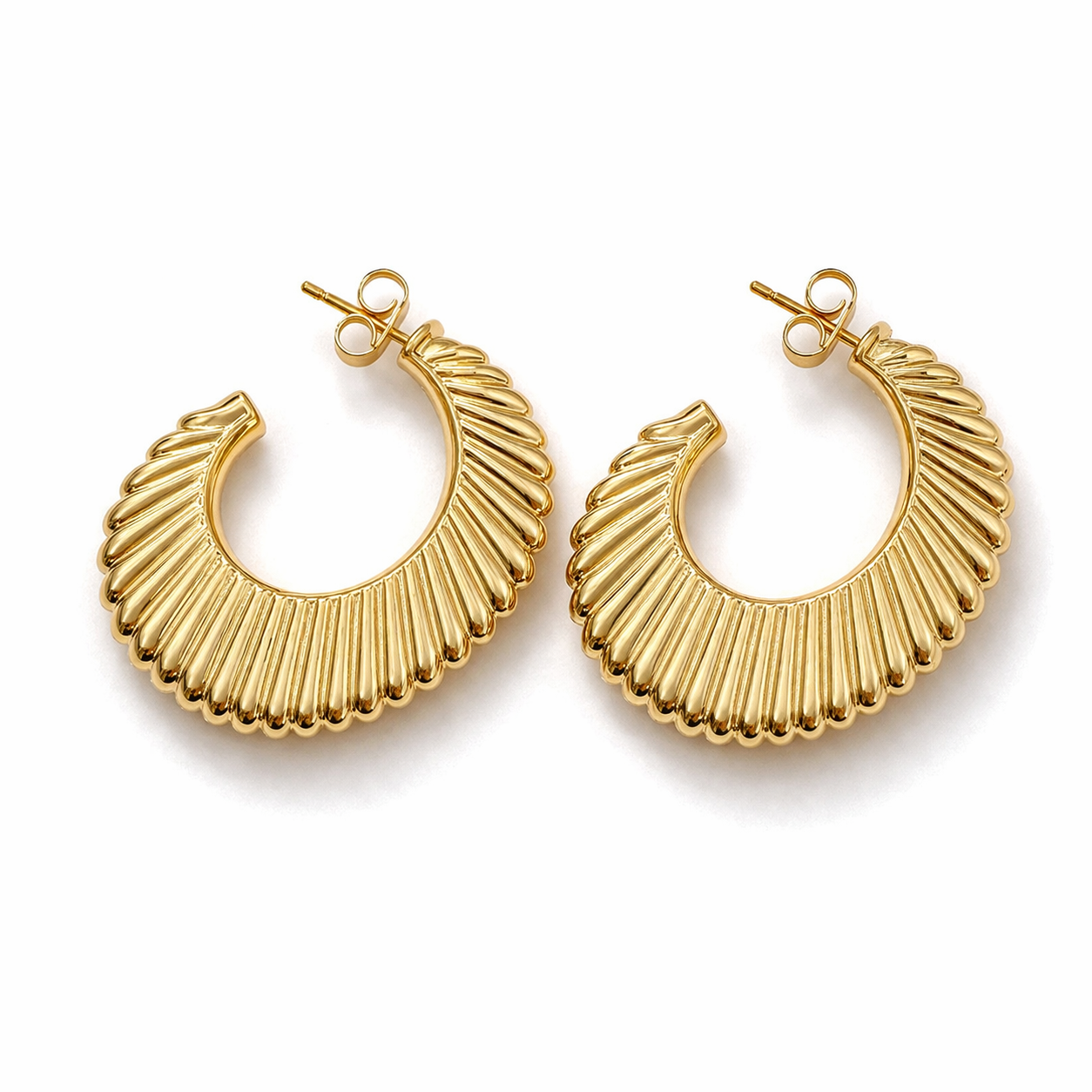 Textured, bold, and made for the coast. The Shell Hoop Earrings feature a ribbed, shell-inspired design that fans out into a beautiful crescent shape. They catch the light with every turn of your head and bring an instant beach-luxe feel to any outfit. The earrings you put on first and build the whole look around.