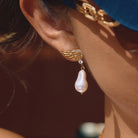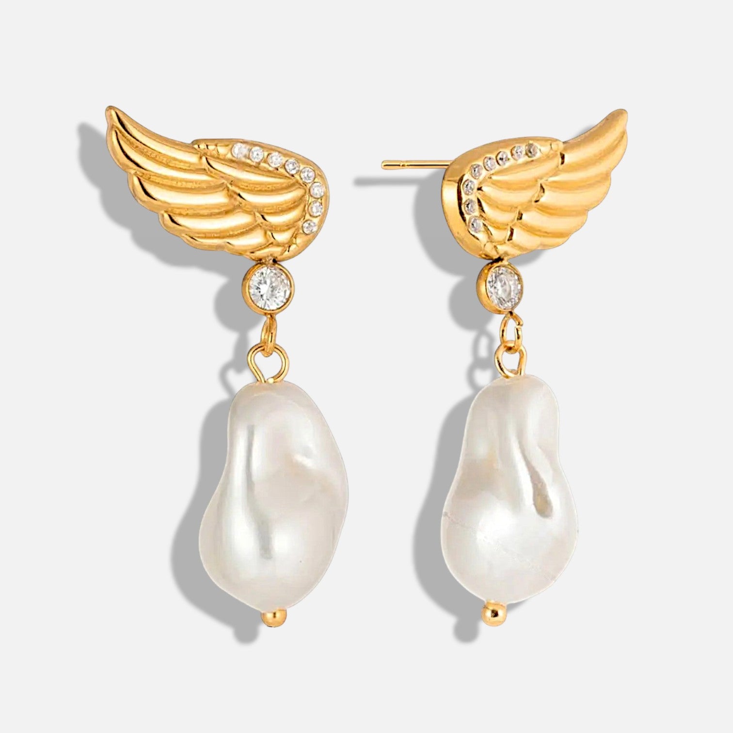 Romantic and softly striking, these wing pearl drop earrings bring a graceful glow to any look. The sculpted wing detail paired with the organic pearl drop creates a piece that feels delicate yet expressive, making it just as beautiful for elevated everyday styling as it is for dinners, events, and special moments.